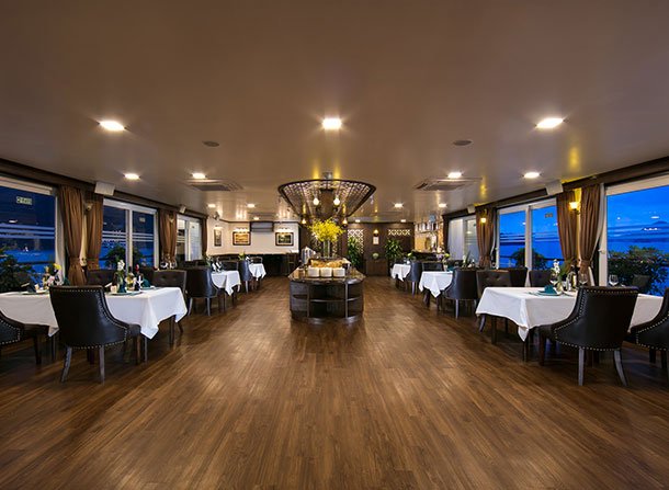 With the capacity of occupying  up to 55 passengers, our Mon Chéri Restaurant  is the combination of elegance, cozy and modern atmosphere with surround views of the incredible scenery. The Restaurant offers normal menu, vegetarian and Halal eaters in Vietnamese, Asian and European styles you will have chance to tasted a variety of great cuisines.