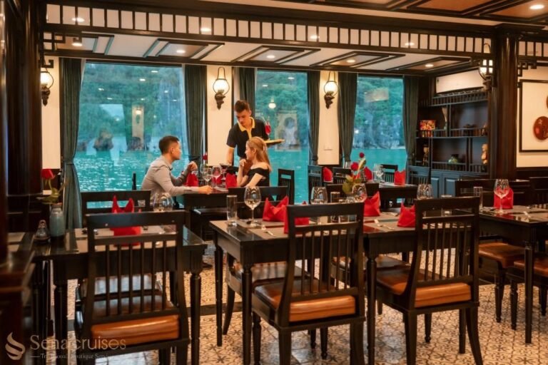 During the time well prepared lunch is served, Sena Cruise – Luxury Boutique Cruise slowly navigates emerald water and thousands of Karst Mountains towards the Harbor.